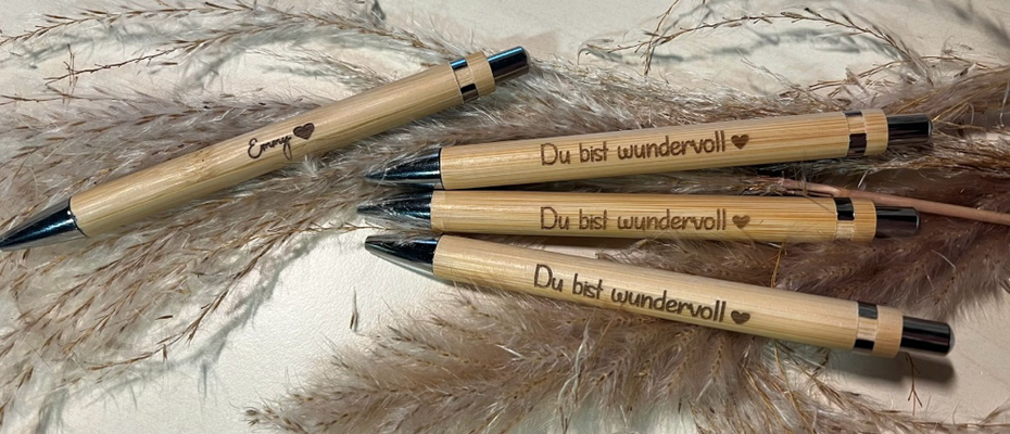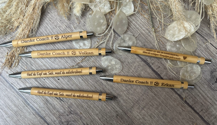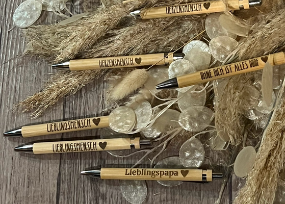 Bambuskugelschreiber - wahlweise mit blauer oder schwarze Miene.