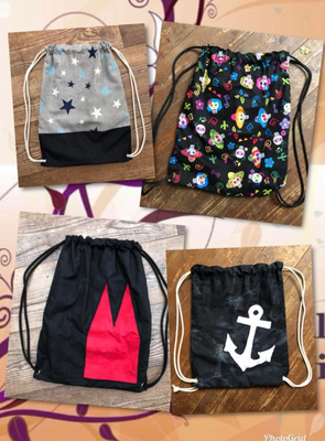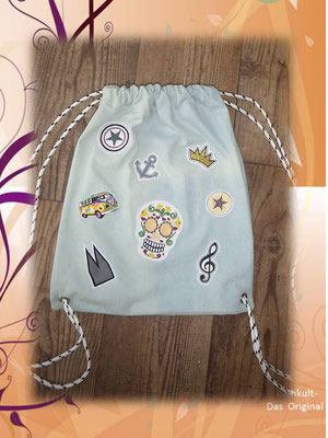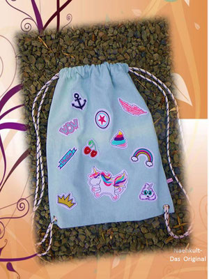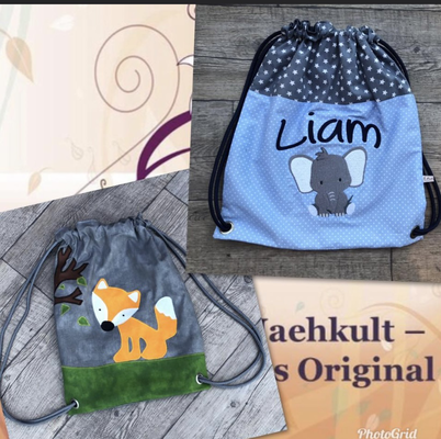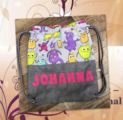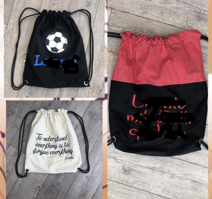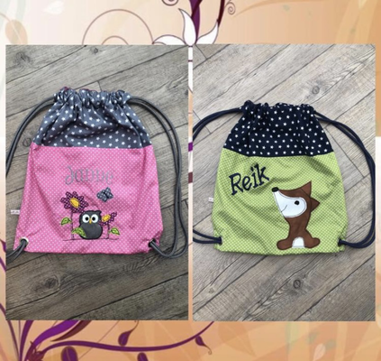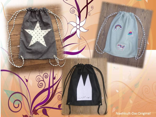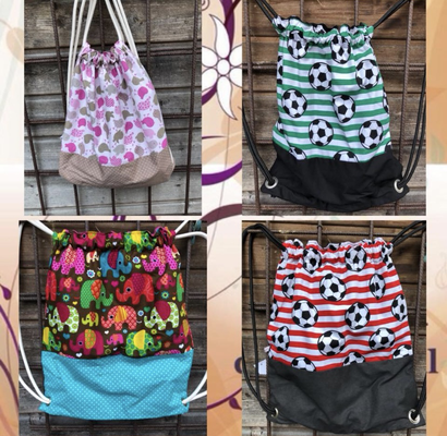 Die Turnbeutel fertige ich individuell mit verschiedenen Mustern und in Wunschgröße an.