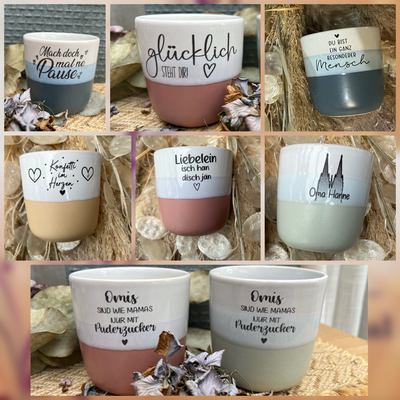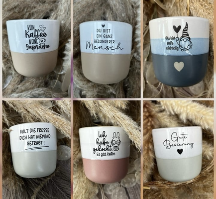 Tassen ca. 200 ml mit individueller Beschriftung ( Farben, nur solange Vorrat reicht)